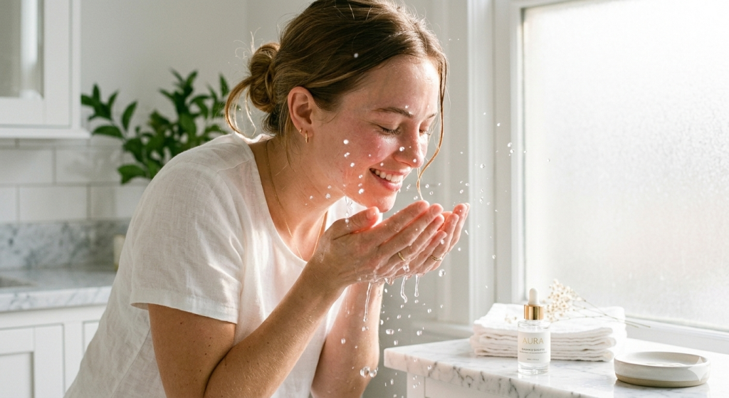 My Tip: Just splash your face with lukewarm water. It keeps your skin barrier intact and ready to absorb your morning Vitamin C much better.
